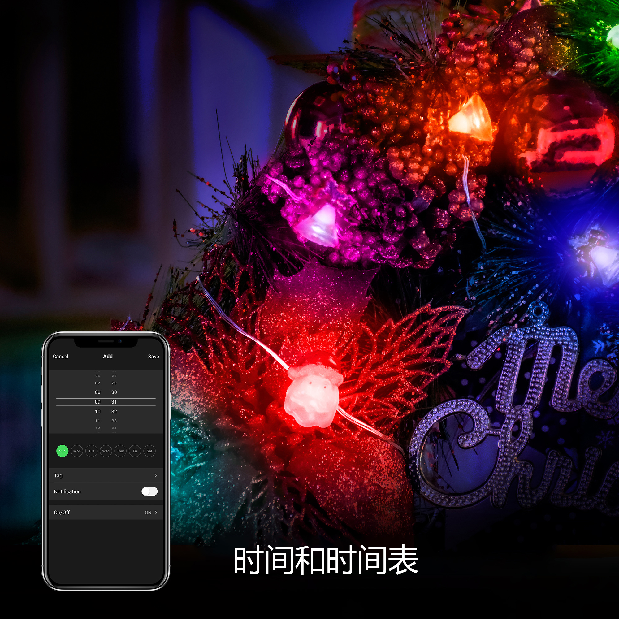 DOSYU 2M 20LED 圣诞灯挂件装饰,24键遥控器,适用于节日,生日派对,圣诞节(铃铛&圣诞老人)